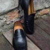 Upper made of soft and flexible natural leather. Removable inserts/insoles Outsole made of natural leather with a stacked all leather heel.